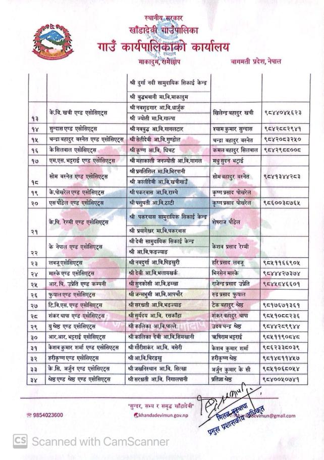 दररेट पेश गर्ने सम्बन्धमा (मानेडाँडा शैक्षिक व्यवस्थापन)