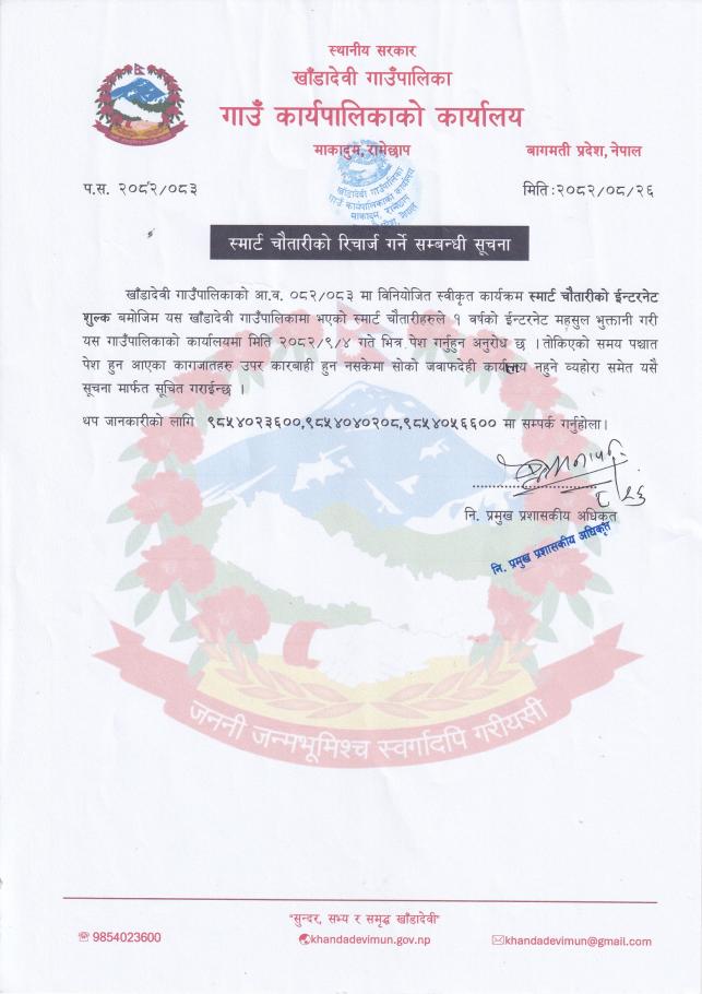 » स्मार्ट चौतारीको रिचार्ज सम्बन्धमा ।