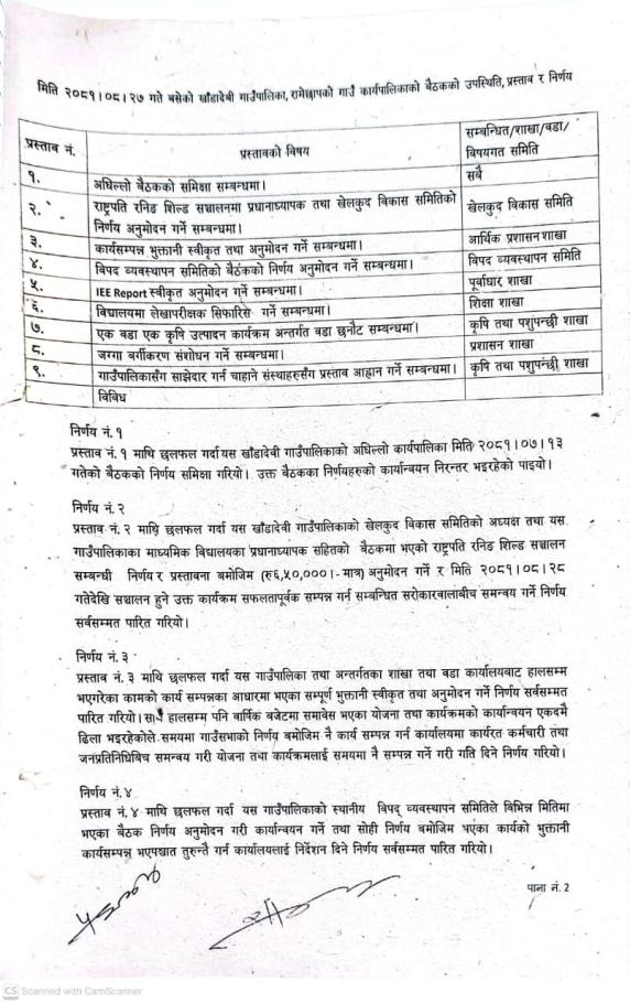कार्य पालिकाको निर्णयहरु