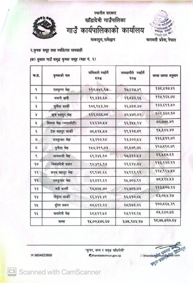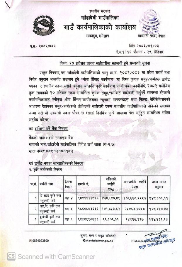 २० प्रतिशत लागत साझेदारीमा सहभागी हुने सम्बन्धी सूचना!!!