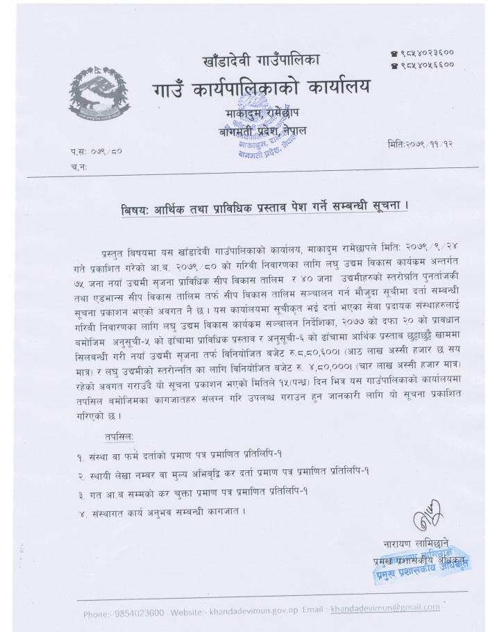आर्थिक तथा प्राविधिक प्रस्ताव पेश गर्ने सम्बन्धमा (मेड्पा कार्यक्रम)
