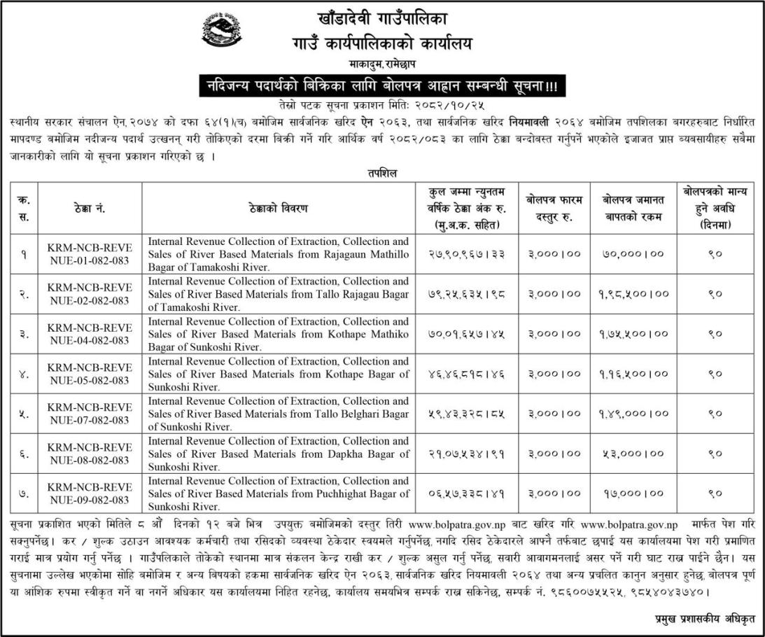 » नदीजन्य पदार्थको बिक्रिको लागि बोलपत्र आव्हान सम्बन्धी सूचना !