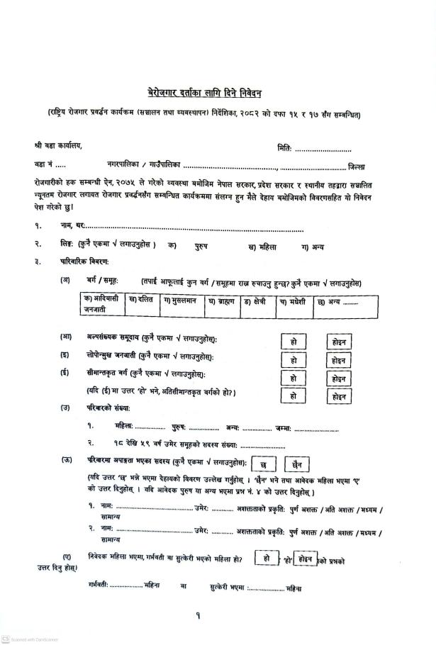 न्यूनतम रोजगार लगायत रोजगार प्रवर्दनसँग सम्बन्धित कार्यक्रममा संलग्न हुनको लागि निवेदन दिने सम्बन्धी सूचना !