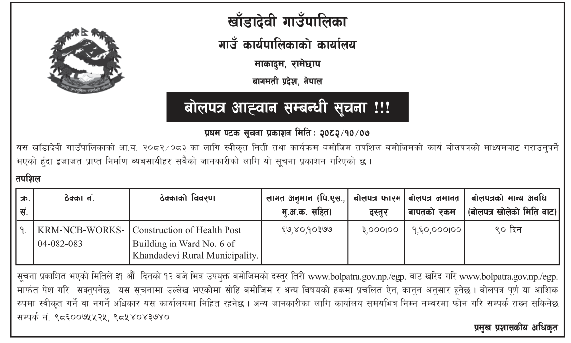 » बोलपत्र आव्हान सम्बन्धी सूचना !