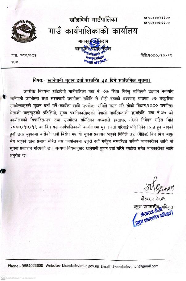 मुहान दर्ता सम्बन्धी ३५ दिने सूचना !!! (वडा नं. ७, चिरंखु माथिल्लो ढड्यान)