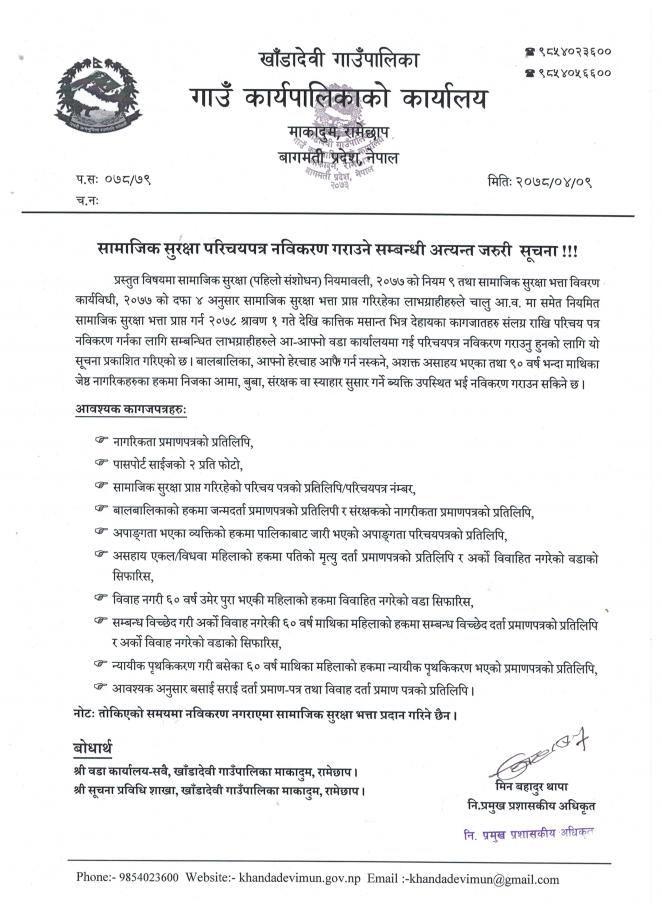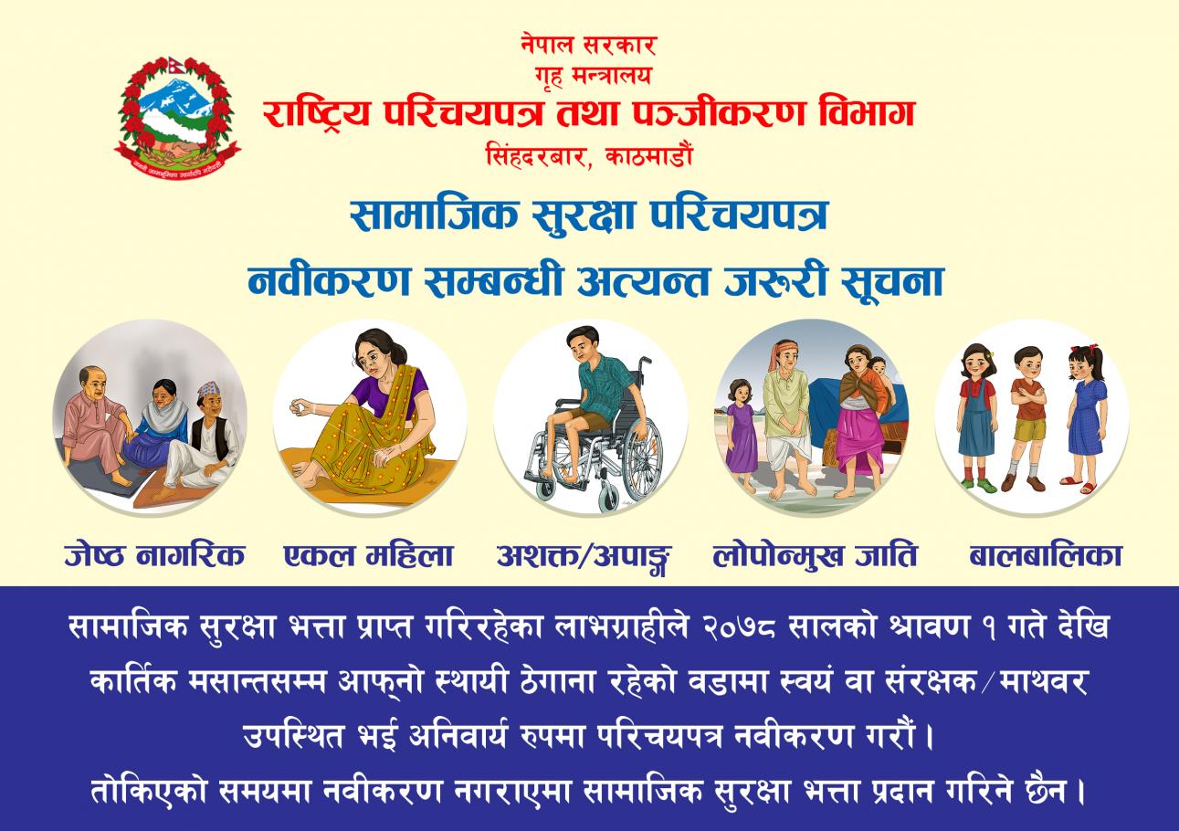 सामाजिक सुरक्षा पत्र नविकरण गर्ने सम्बन्धी सूचना !!!