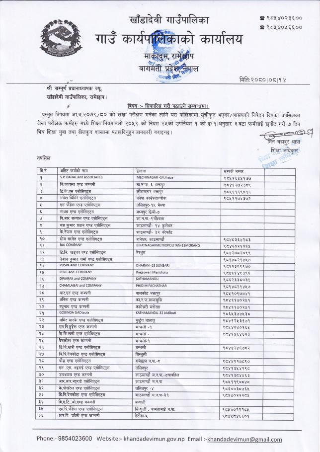 सिफारिस गरी पठाउने सम्बन्धमा । (सम्पूर्ण विद्यालयहरु)